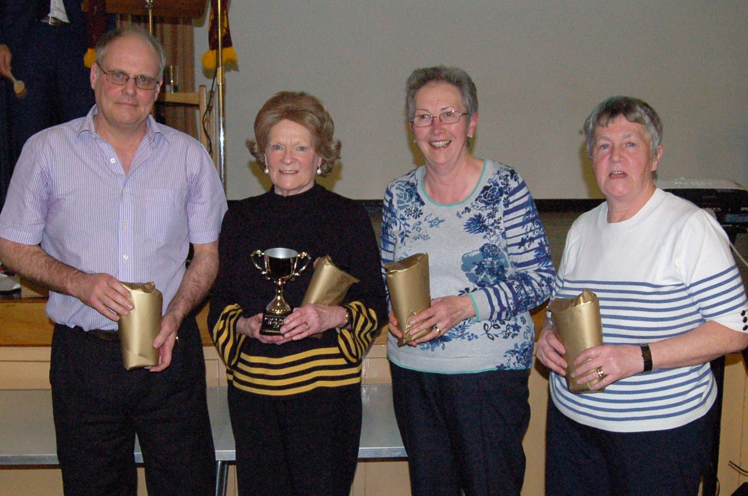 The reigning champs - Douglas Munro, Janette Munro, Jean Maddock and Anne Walker (pictured below) - retained their title though were closely followed by joint runners up of Janice Hannigan, Lynn Kelly, Roslyn Ward and Chris Mitchell, representing the Inbetweeners, and Margaret McCloy, Janice Findlay, Laura St. John and June Graham, representing the Monday cleaning team.