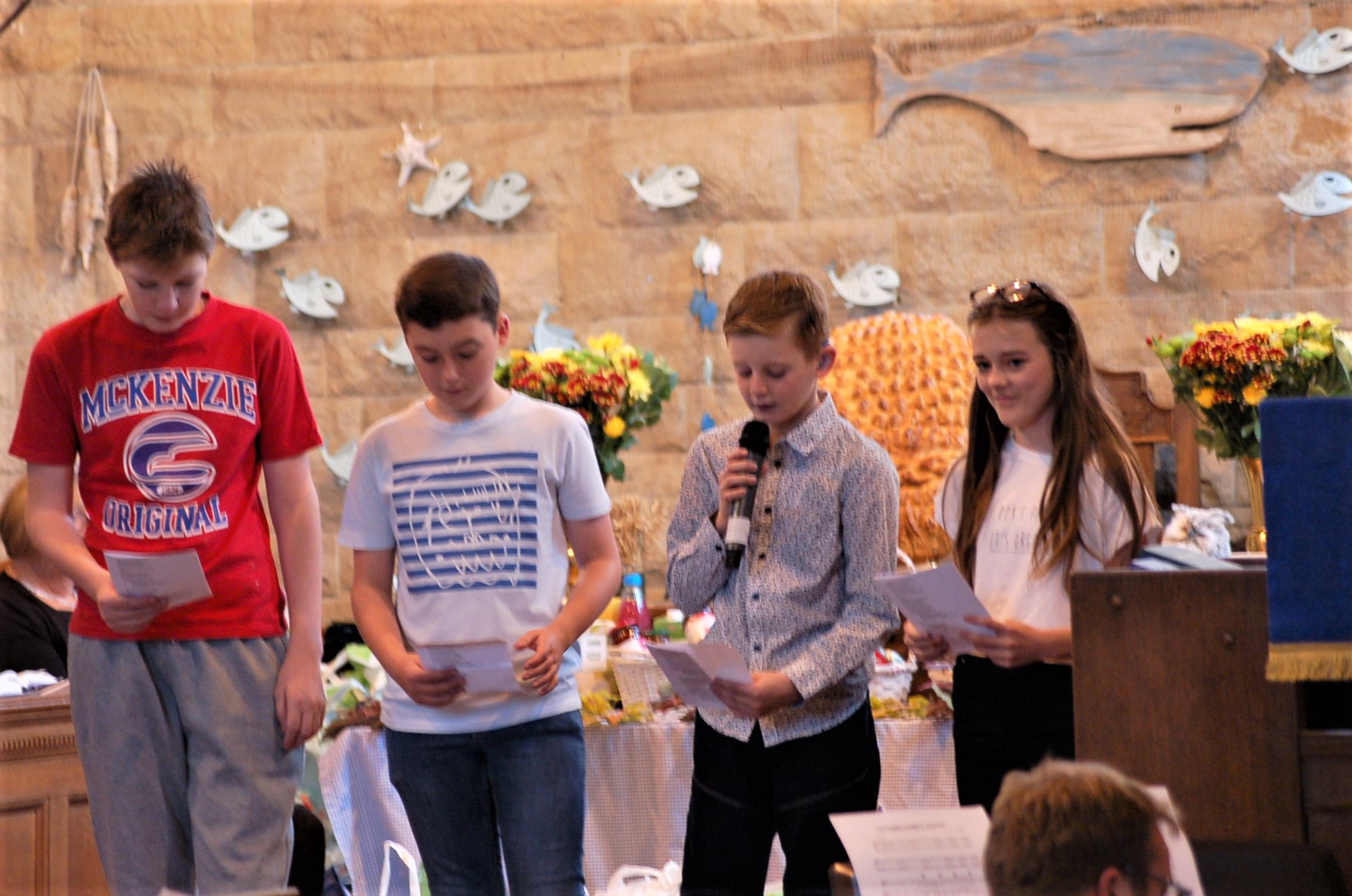 We enjoyed a worshipful harvest service with participation from the young people in our Junior Church and singing from each of our choirs. The Junior Choir sang three songs: Super Sun, For the Harvest and Harvest of Love; the Church Choir sang two: Song of Joyful Thanks and Let Every Thankful Heart; and the Inbetweener also sang two: The Lord's Prayer and For the Beauty of the Earth. Our readings were Psalm 67 and Matthew 13:31-32. In Rev. Calder's reflection we heard about the mustard seed, a tiny seed which grows into a huge tree and how, like the mustard seed, although we think our lives are small, if we use all of our gifts and abilities then we can achieve amazing and wonderful things. The service was followed by lunch for the congregation.